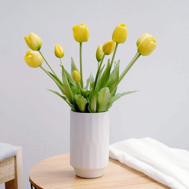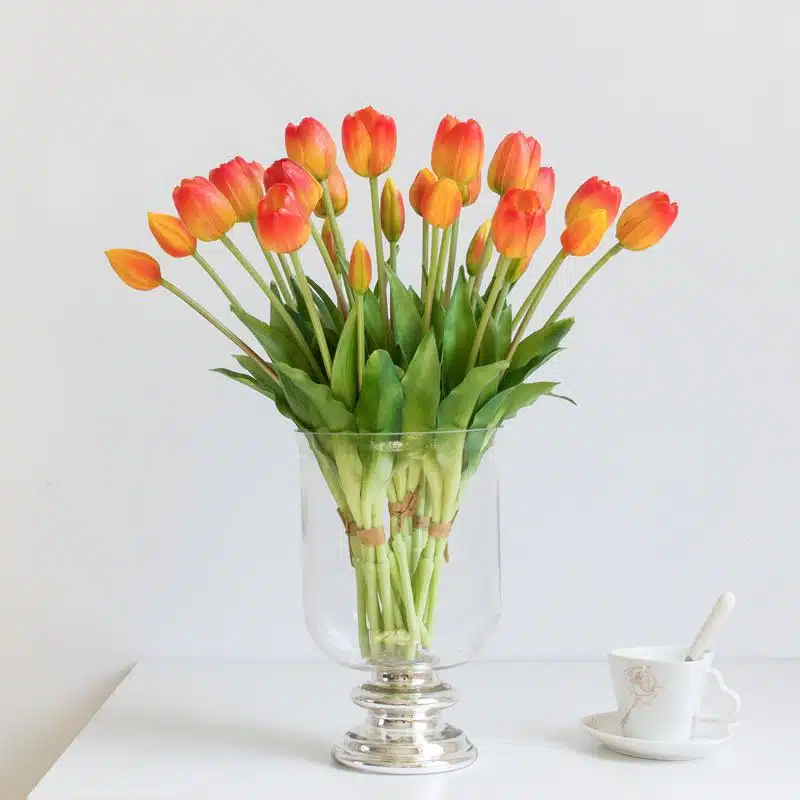 Sans nécessité d'arrosage et dépourvues de terre, ces tulipes artificielles représentent une solution pratique pour les amateurs de végétaux et les désireux de sérénité. Vous pouvez les positionner à loisir, sans vous soucier des conditions de lumière ou de température, créant ainsi votre propre tableau vivant