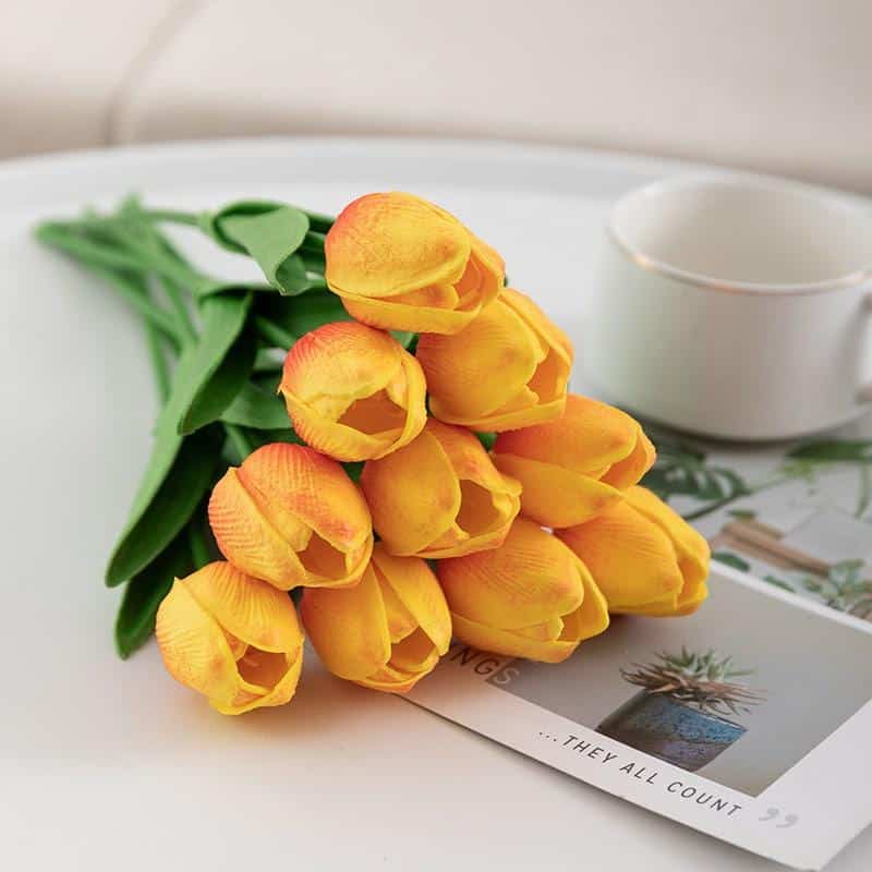 Bouquet de dix tulipes artificielles colorées unies : Plongez dans l'histoire et le charme de la tulipe