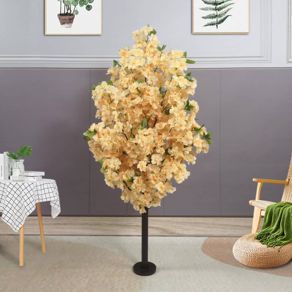 Cerisier artificiel à fleurs de soie et tronc noir discret : une solution pratique pour un environnement apaisant